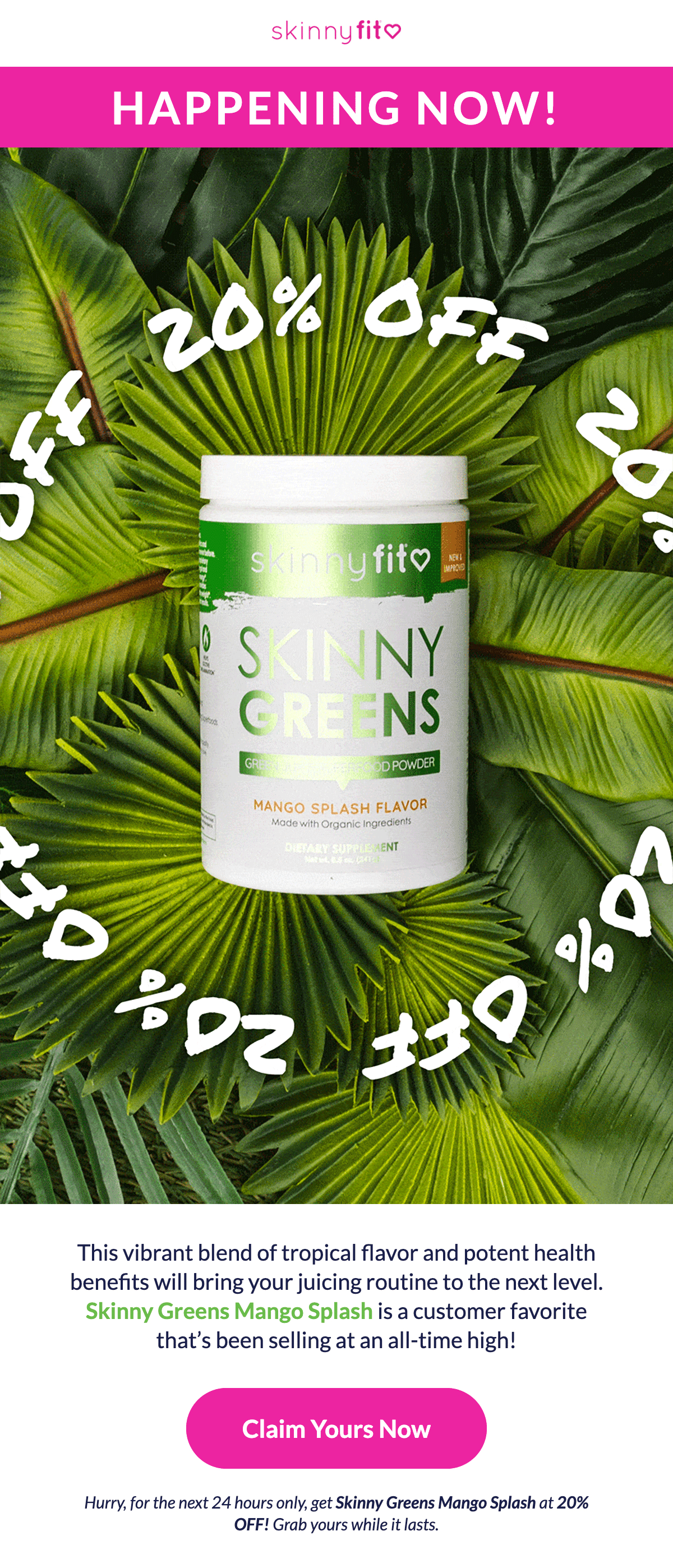 SkinnyFit is a leading health and wellness brand dedicated to helping women feel confident, energized, and supported through premium supplements designed for real, lasting results. As the lead designer for all SkinnyFit email communications, I owned the entire lifecycle of each send — from designing and building within Klaviyo to conducting thorough QA before deployment. I also served as the main point person for all email-related questions and solutions, ensuring every message was on-brand, high-performing, and optimized for a seamless customer experience.