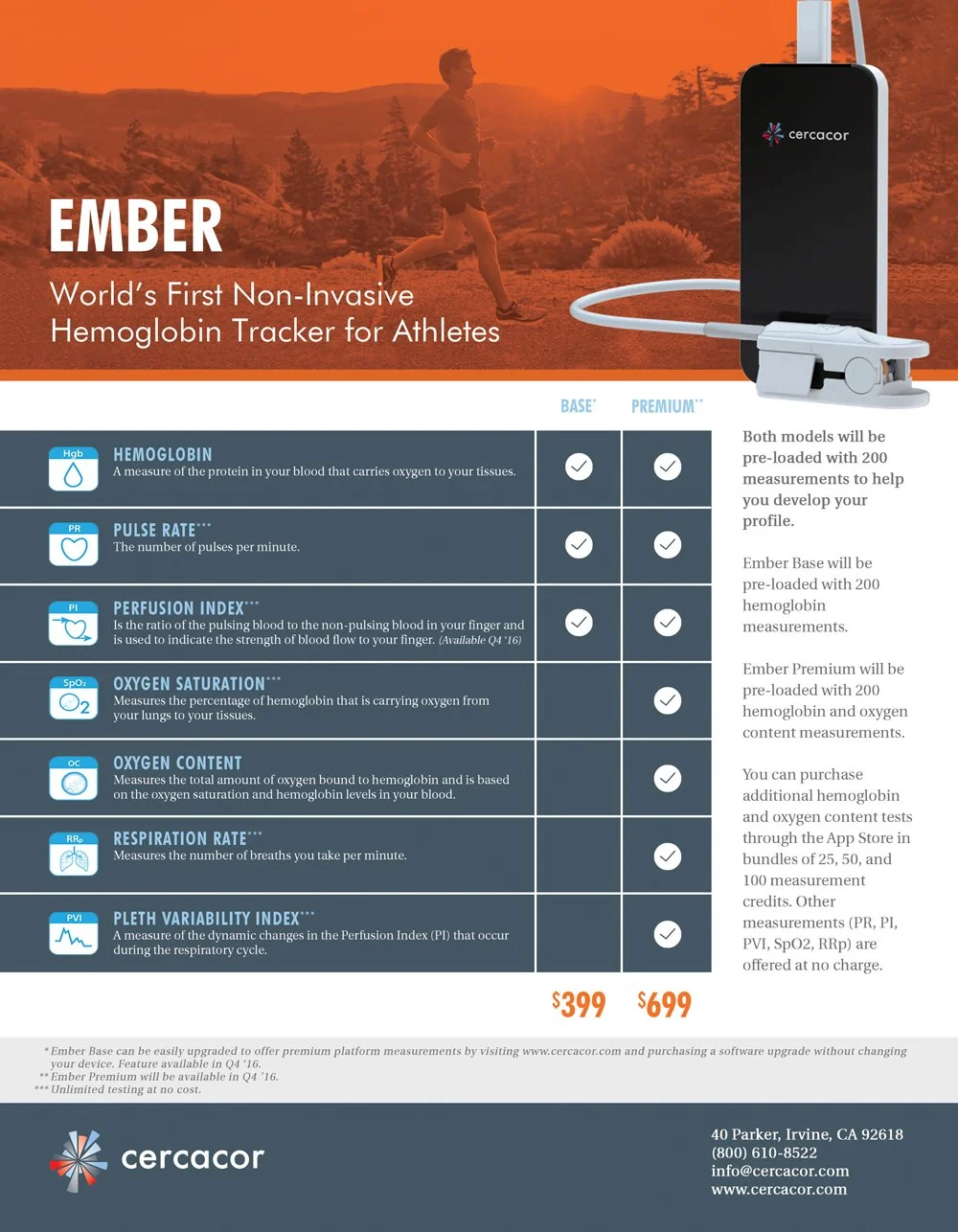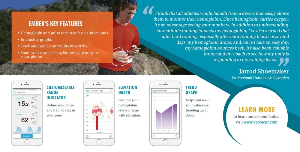 For the launch of Cercacor’s Ember device — a non-invasive hemoglobin tracker — I designed brochures, sell sheets and magazine ads for their trade show debut. I translated complex medical tech into clear, benefit-focused visuals, giving the product a premium presence and supporting sales conversations at the event.