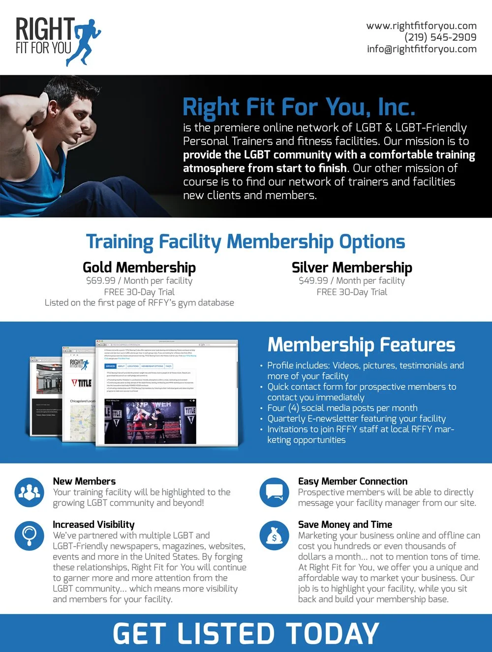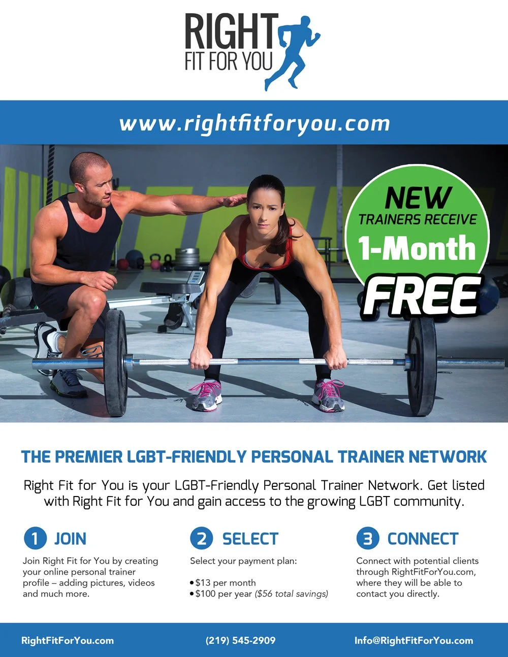 Right Fit for You is an online network that connects LGBT and LGBT-friendly personal trainers and fitness facilities with clients seeking an inclusive training environment. I partnered with the founder to create the brand’s first marketing materials, designing targeted sell sheets for clients, trainers, and facilities to support early outreach and business growth.