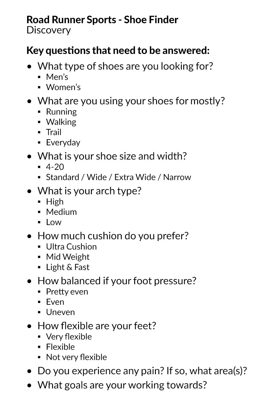 Road Runner Sports is a premier retailer known for helping runners and athletes find high-performance footwear and gear tailored to their needs. I was the UX/UI designer leading the redesign of their online shoe finder to create a more intuitive, performance-focused digital experience.