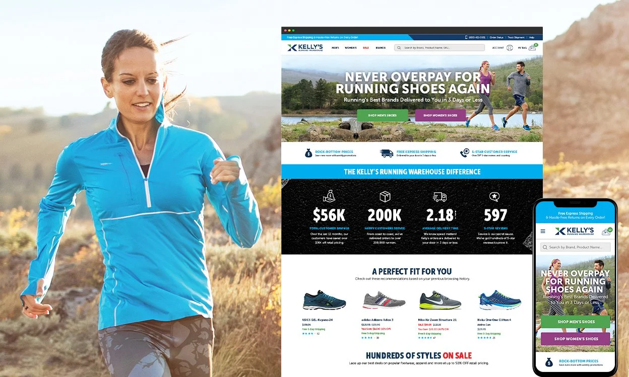 Kelly’s Running Warehouse needed more than a design facelift — it needed a strategic digital transformation. In an oversaturated eCommerce landscape filled with competing sports retailers, the site had to stand out through usability, storytelling, and visual appeal. The redesign focused on elevating the user experience to meet modern expectations: fast, mobile-first, and emotionally resonant.